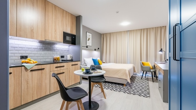 Аренда апартаментов Sova View Beige с кухней для двоих: — Скидка 30% на аренду апартаментов Sova View Beige с кухней в течение 1 суток (2 дня/1 ночь) для двоих (2660 руб. вместо 3800 руб.)