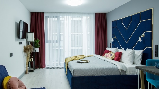 — Скидка 30% на аренду апартаментов «Sova Ярд View Blue» с кухней и видом на город в течение 2 суток (3 дня/2 ночи) для двоих (5320 руб. вместо 7600 руб.)