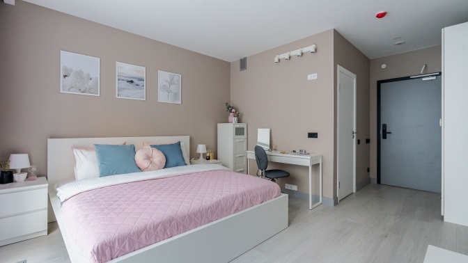 Аренда апартаментов «Sova Ярд Pink» без кухни для двоих: — Скидка 30% на аренду апартаментов «Sova Ярд Pink» без кухни в течение 1 суток (2 дня/1 ночь) для двоих (2800 руб. вместо 4000 руб.)